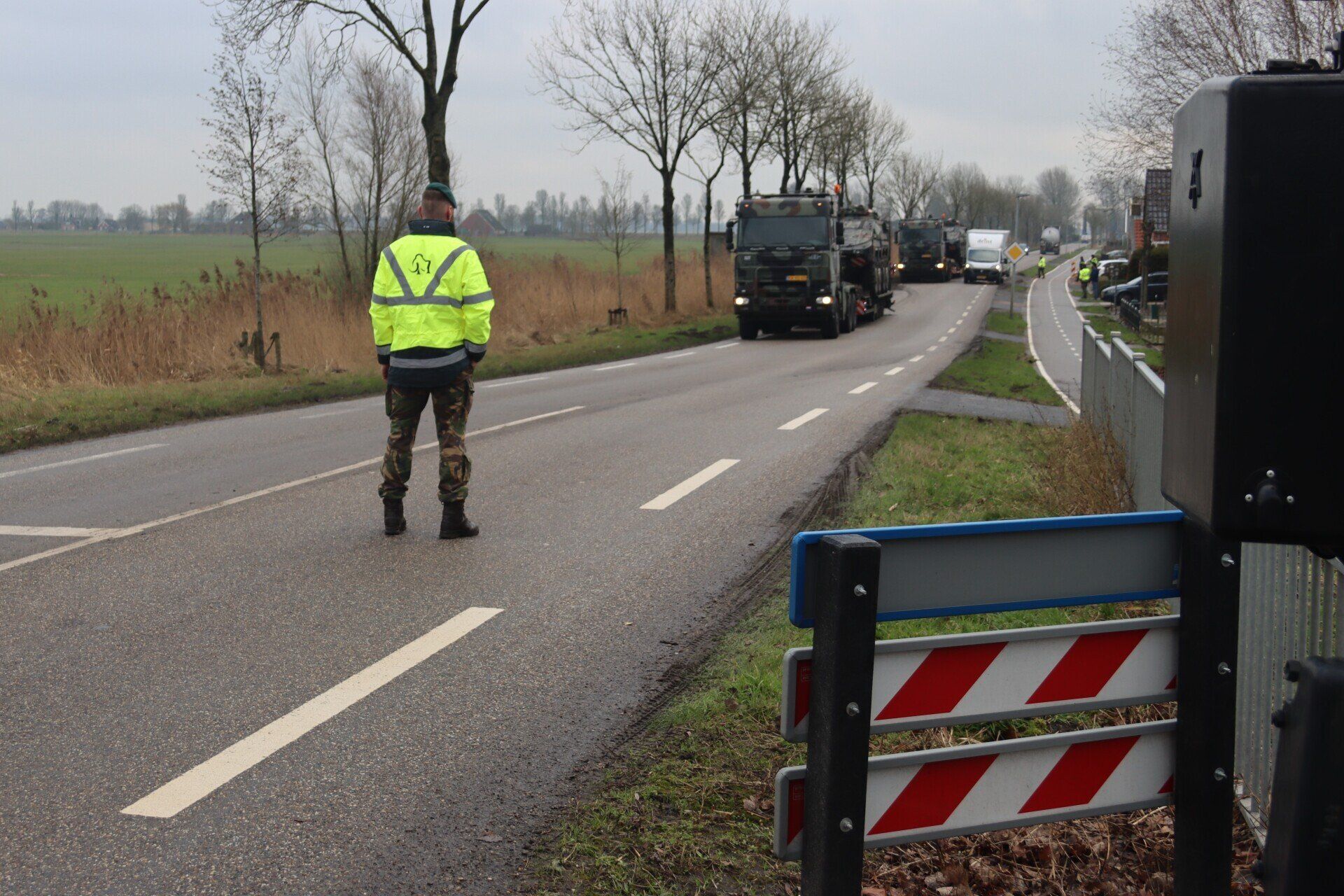 Een aantal vrachtwagens met opleggers vervoerden materieel richting Marnewaard. Tussen Gaarkeuken en de spoorwegovergang ging het bij één combinatie mis. De bestuurder kwam met het gebeuren in de berm en wist ternauwernood de combinatie weer op de weg te krijgen. Vermoedelijk met dank aan een boom die nét genoeg was om de situatie onder controle te krijgen.