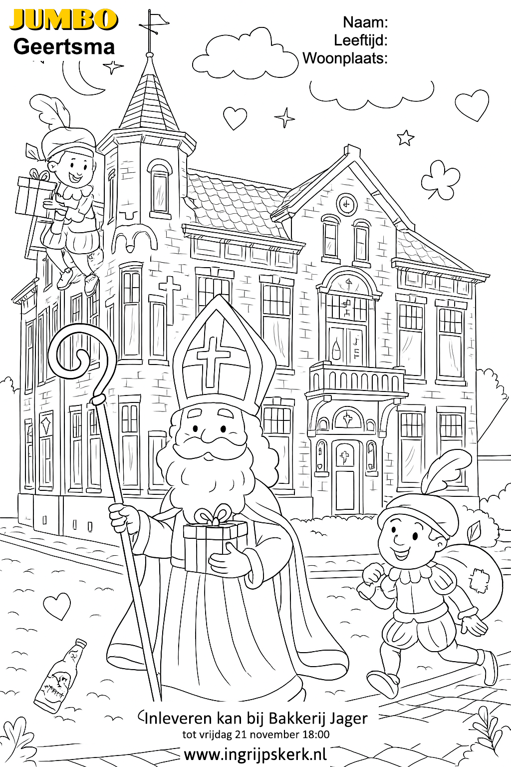 Kinderen uit Grijpskerk worden uitgenodigd om een kleurplaat te maken voor Sinterklaas! Je kunt de kleurplaat downloaden via het oranje vak hieronder.