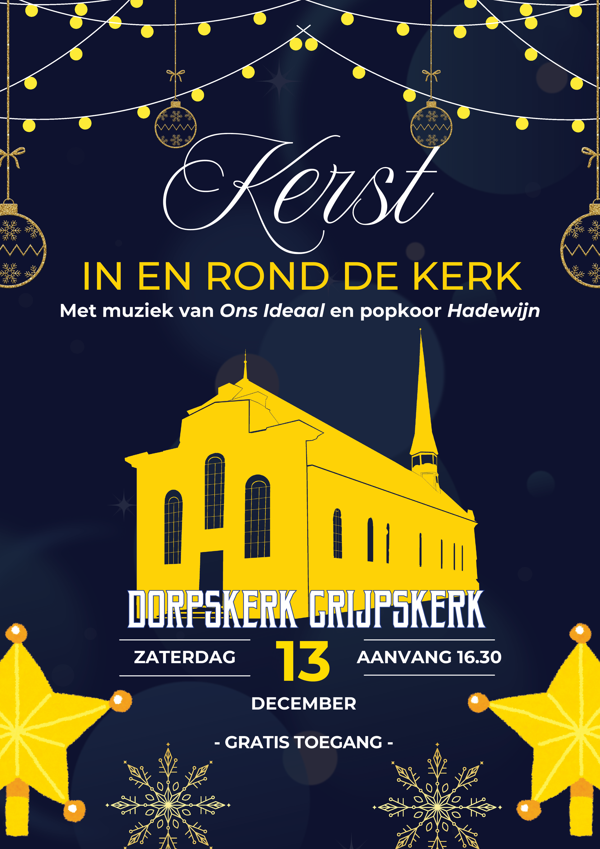 Op zaterdag 13 december vormt de Dorpskerk in Grijpskerk het sfeervolle decor van Kerst in en rond de Kerk, een warm en verbindend kerstfeest voor jong en oud. Bezoekers worden vanaf 16.30 uur welkom geheten met glühwein of warme chocolademelk, waarna het programma rond 18.00 uur wordt afgesloten.