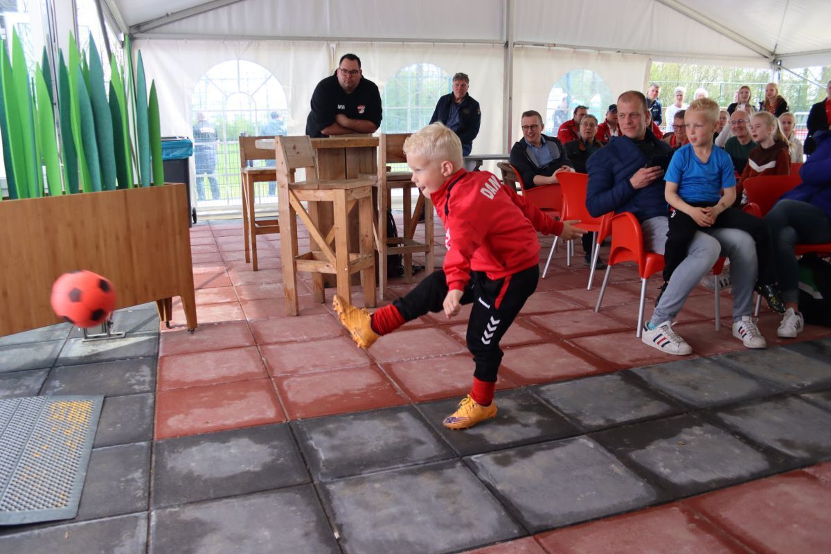 De voetbalvereniging in ons dorp kan er weer jaren tegenaan als het gaat om de kantine en kleedruimtes. Afgelopen zaterdag werd het nieuwe gebouw feestelijk geopend. Die openingshandeling vond plaats met een aantal daverende schoten vanaf het terras van de nieuwe kantine. Dit werd gedaan door wethouder Stomphorst, oudste spelend lid Jeen Broeils én uitblinker en jongste lid Nils Dam.