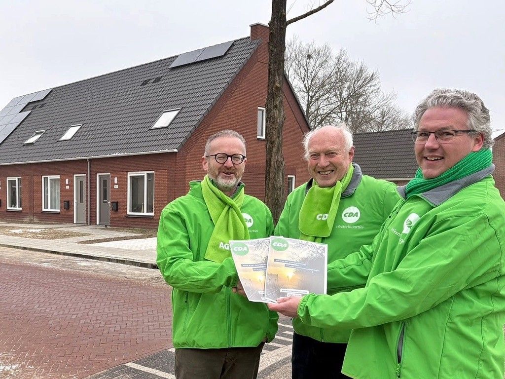 Op de foto: Ferdinand Zomerman (r) overhandigt namens de programmacommissie het verkiezingsprogramma aan de voorzitter van het bestuur van het CDA Westerkwartier, Geert Kooiker (m), en lijsttrekker Jan Riemeijer (l). Afgelopen vrijdag heeft Ferdinand Zomerman het nieuwe verkiezingsprogramma van het CDA Westerkwartier, Thuis in het Westerkwartier, overhandigd aan Geert Kooiker en lijsttrekker Jan Riemeijer. De overhandiging vond plaats bij een nieuwbouwlocatie in Marum, een concreet voorbeeld van één van de speerpunten van het programma: voldoende en betaalbare woningen voor alle inwoners. Het programma vormt de inhoudelijke basis voor de gemeenteraadsverkiezingen van 2026–2030. Het CDA Westerkwartier streeft naar een gemeente waarin inwoners zich thuis voelen, gehoord worden en kunnen rekenen op een betrouwbare overheid. Wonen wordt gezien als een basisbehoefte, geen luxe. Het programma zet zich in om zoveel mogelijk mensen in de dorpen van de gemeente een passend huis te bieden, van starters tot senioren. Daarbij horen goede zorg, welzijn en leefbaarheid, zodat dorpen sterke en hechte gemeenschappen blijven. “Onze koers is helder,” zegt Geert Kooiker. “Jongeren krijgen ruimte om mee te denken en mee te beslissen. We bouwen niet alleen huizen, maar ook gemeenschappen. Daarbij vertrouwen we op de kracht en betrokkenheid van inwoners, verenigingen en lokale initiatieven. Zo zorgen we ervoor dat iedereen écht onder de pannen is.” Lijsttrekker Jan Riemeijer benadrukt: “Met Thuis in het Westerkwartier willen we in gesprek met onze inwoners over de toekomst van de gemeente. Jongeren, gezinnen, ondernemers en vrijwilligers moeten zich gehoord weten en kansen krijgen. Ons programma biedt praktische oplossingen met een warm hart voor onze gemeenschap.” Het programma legt de nadruk op betrokkenheid, solidariteit en toekomstbestendige voorzieningen. Jongeren worden actief bij het beleid betrokken en inwoners kunnen rekenen op toegankelijke, kwalitatieve zorg en welzijnsvoorzieningen. Het CDA zet zich in voor dorpen die leefbaar en sterk zijn, waarbij lokale initiatieven en de betrokkenheid van inwoners centraal staan. Daarnaast biedt het programma aandacht voor duurzaamheid, landbouw en natuur, een sterke lokale economie, bereikbaarheid, veiligheid en de gevolgen van gaswinning en Nij Begun.